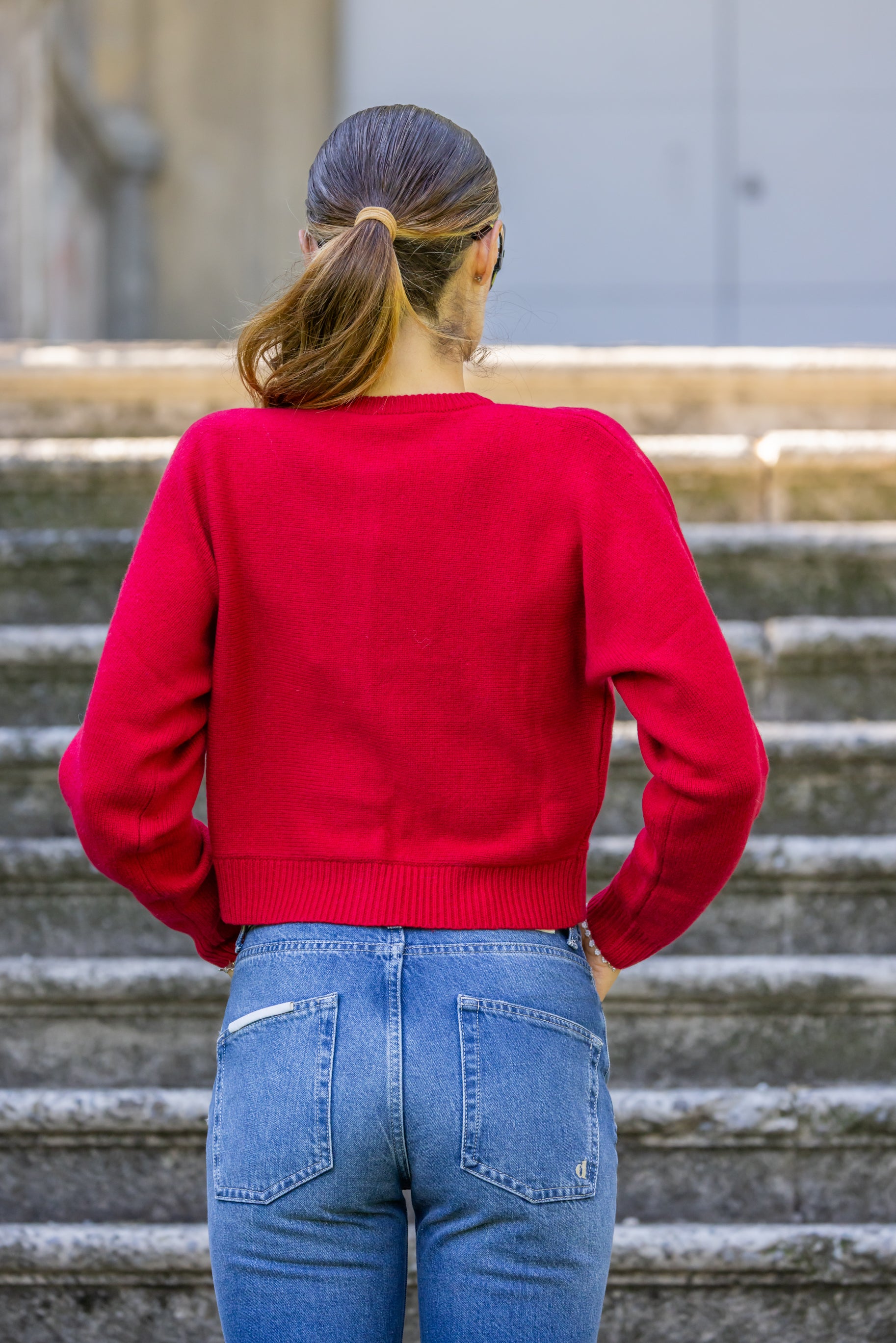 CARDIGAN PUNTO ORIZZONTALE SENZA CUCITURE SULLA SPALLA E BOTTONE IN MAGLIA TONO SU TONO
