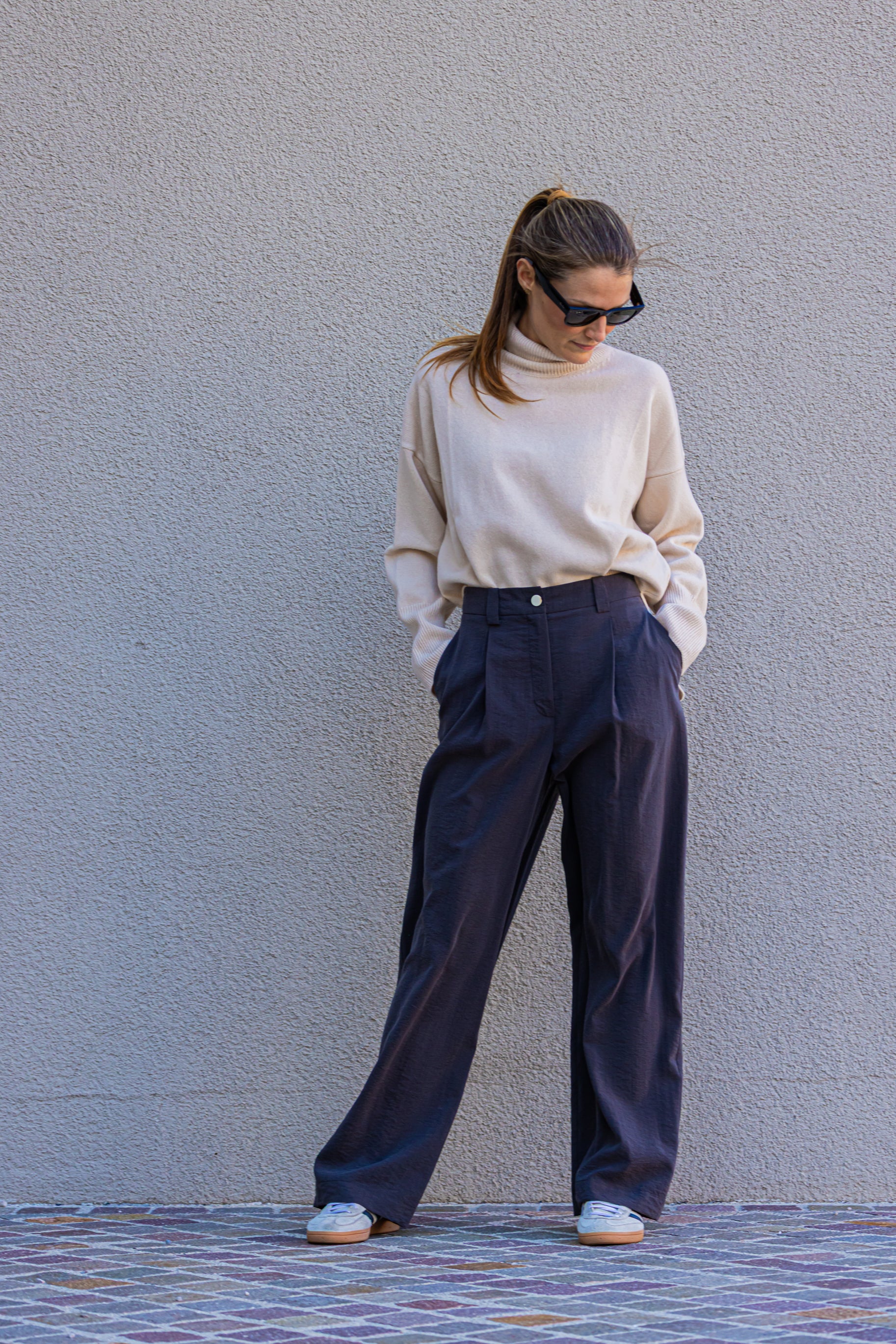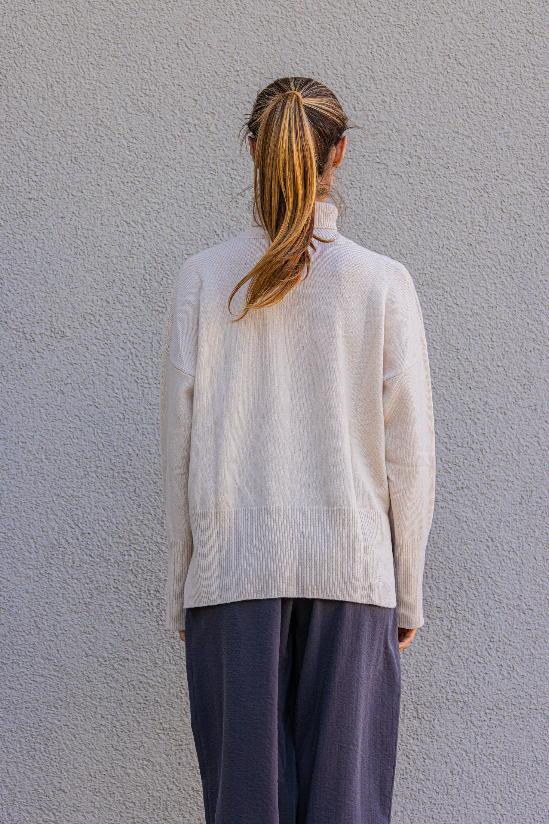 MAGLIA OVERSIZE COLOR CIPRIA CON COLLO ALTO 100% LANA VERGINE