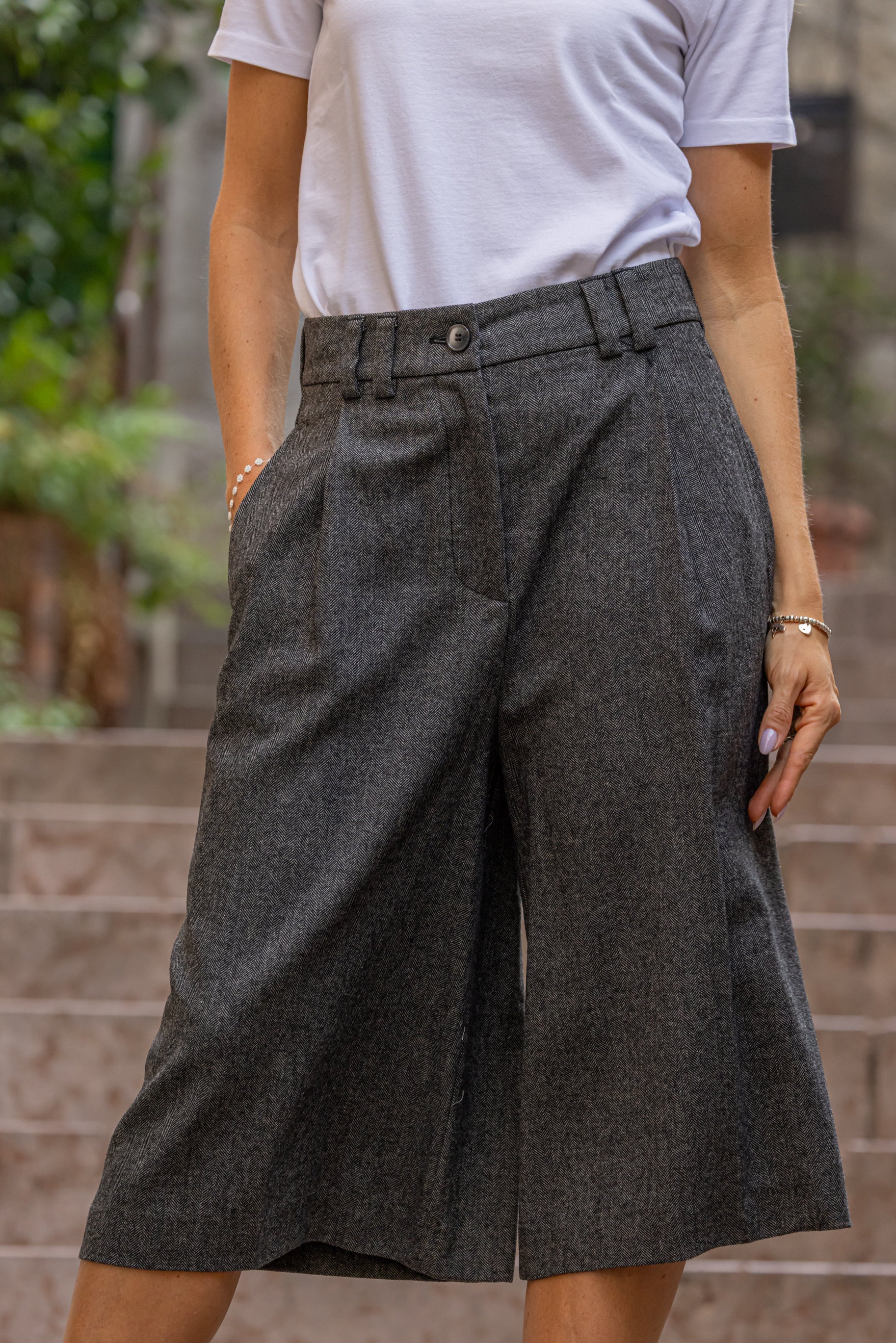 BERMUDA SPINATO GRIGIO ANTRACITE 40%LANA 30%POLIESTERE 29%VISCOSA 1%ELASTANE